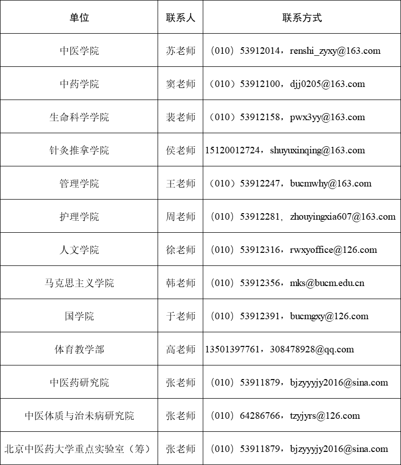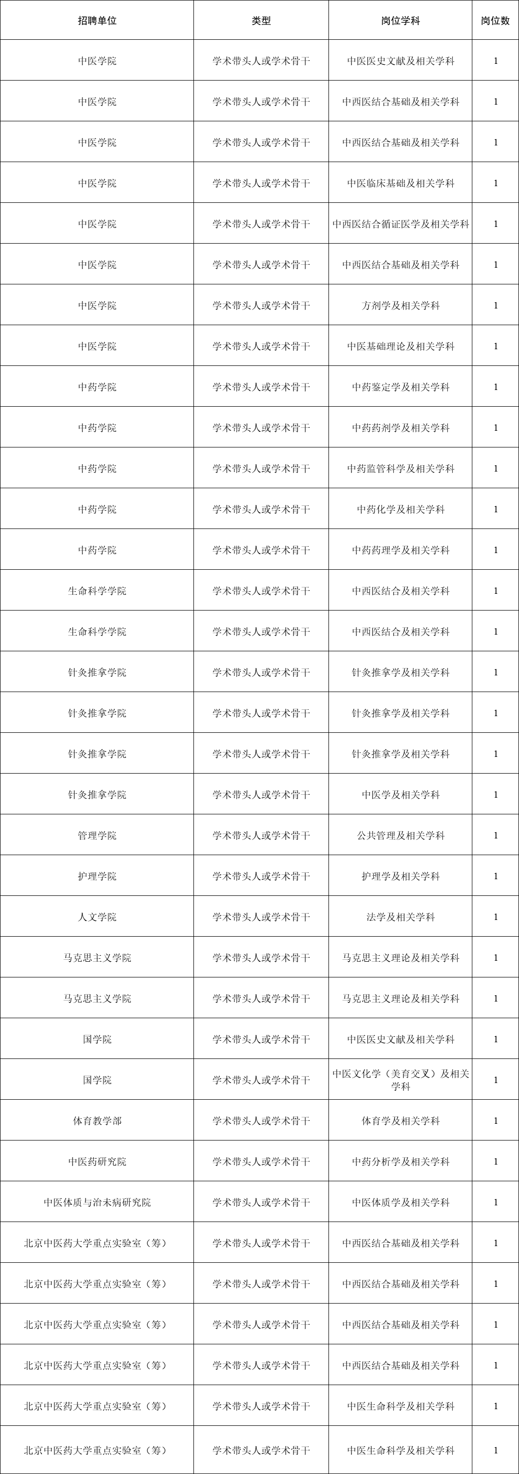 注:以上岗位的需求研究方向及其他相关招聘要求详见北京中医药大学招聘网(https://hrzp.bucm.edu.cn:8080/zp.html)。后续招聘岗位将在北京中医药大学招聘网动态更新,请及时关注。